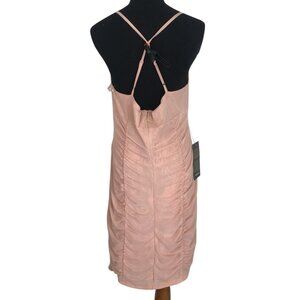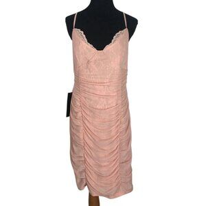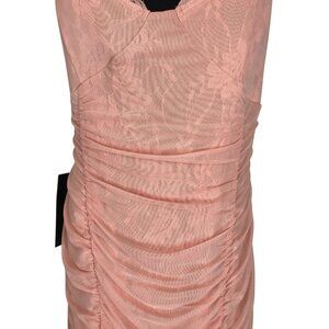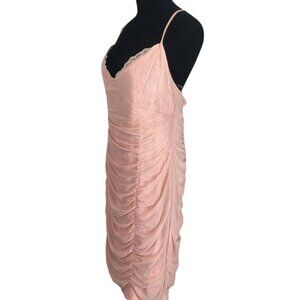 Bebe Dress Womens Size XL Peach Ruched Lace And Mesh Bodycon