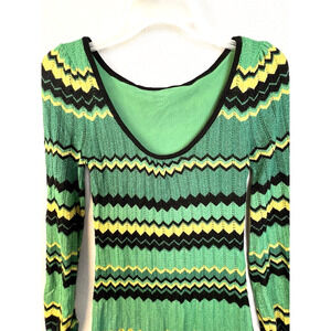 Bebe Dress Womens Small Green Black Silver Chevron Metallic Party Night Out