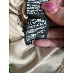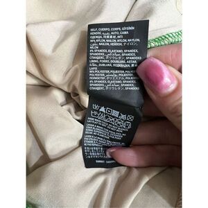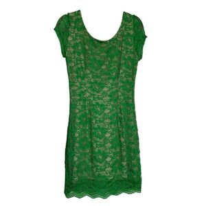 Bebe Dress Womens Medium Green Tan Lace Overlay Mini Bodycon Lined Short Sleeve