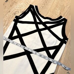 Bebe Elegant Black and White Bandage Dress NWT Size M. Measurements are lying flat but this is a stretch dress so flexible on the size.