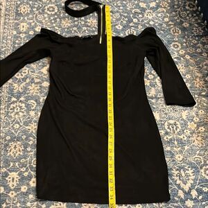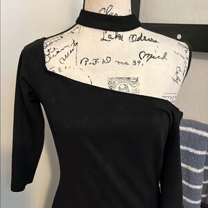 Bebe Black Elegant Choker One Shoulder Dress, size medium.