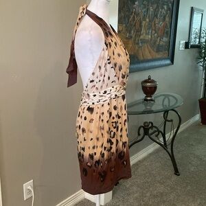 Bebe Elegant Silk Animal Print Leopard Halter Mini Juniors Dress size M