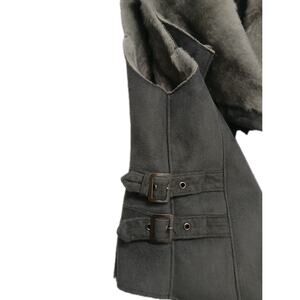 Bebe women's faux suede , faux fur vest with side buckles moto detailing.