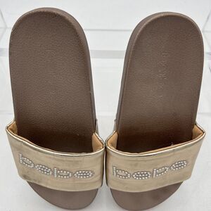 Bebe Felizia Slide Sandals Flip Flops Gold Size 9 EUC