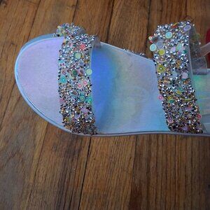 Bebe Flat Sandals Rhinestone and Fruit Glitter Details