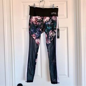Bebe Floral Mesh Moto Sport Colorblock Leggings