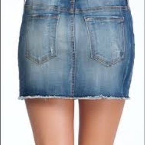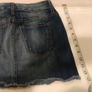 Super cute little denim mini. Gently used, it is in great condition. Frayed bottom hem. Size 25 but can fit up to a 26 as the material is stretchy