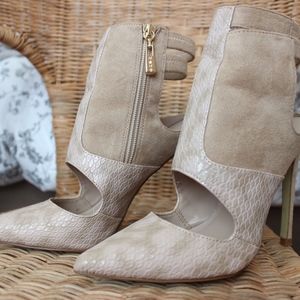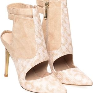Fun stiletto pumps with a faux snake/suede contrast! I've only worn these a couple times. They’re just a little high for me. Everything is in good condition except the sole which has some scuffing.