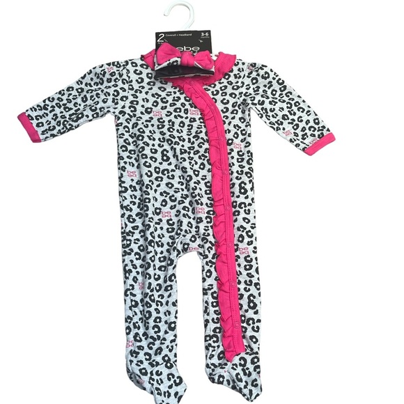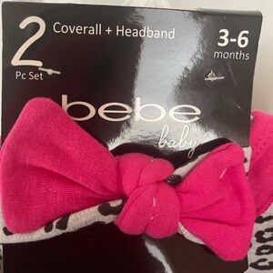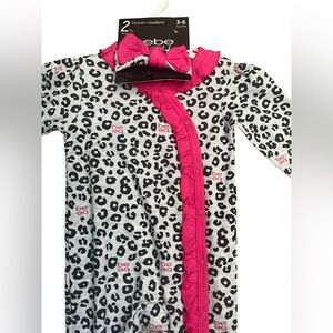 Bebe Girl Sleepwear w/headband. Leopard Pink Grey/black. Size: 3-6 months. NWT.