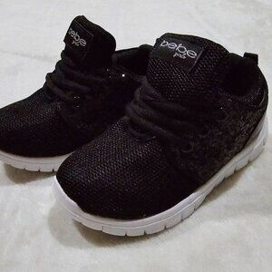 Bebe Girl Sparkly Sneakers ⦠Black Glitter Lace-Up ⦠Toddler Playground Style 9