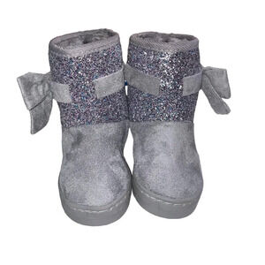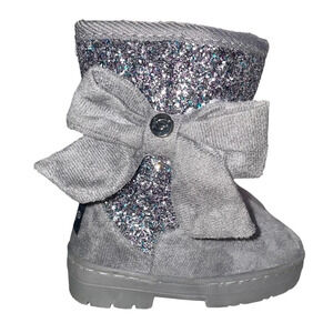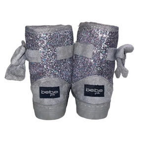 Bebe Girls Little Kids /Girls Studded Bow Boots Gray Glitter Faux Fur Size US 7