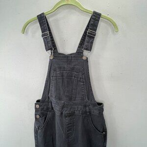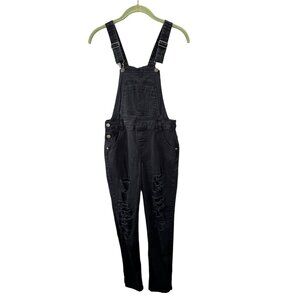 Bebe Girls Overalls Black Denim size XL 16 Distressed Destroyed Stretch Bib