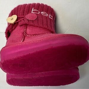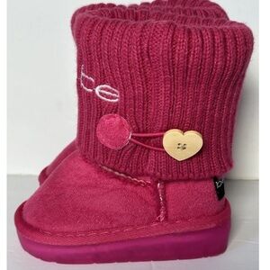 Bebe Girls Size 5 Hot Pink Faux Suede & Knit Mid Calf Slip On Light up Boots