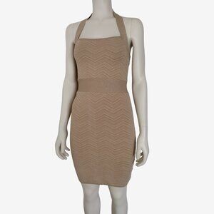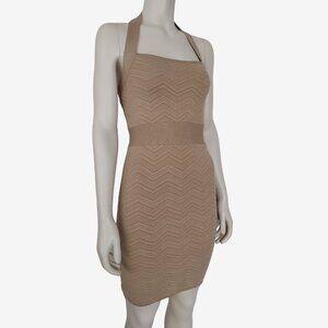 Bebe Gold Chevron Metallic Mini Knit Halter Bandage Dress Size M