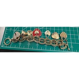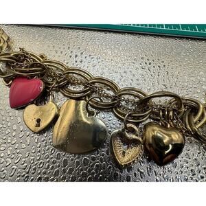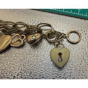 Bebe Gold Tone Charm Bracelet Heart and Lock