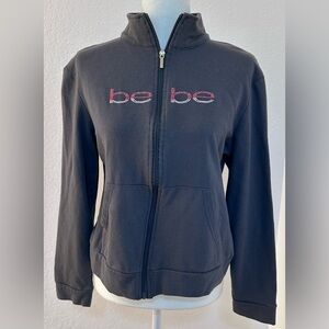 Bebe Gray Long Sleeve High Neck Full Zip Vintage Jacket Size Large