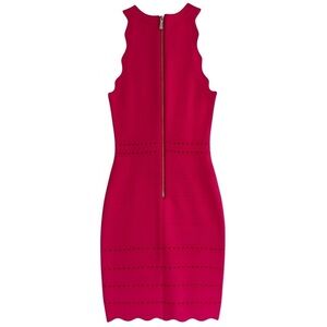bebe dress, bandage dress, halter midi dress, pink cocktail dress, sexy club dress, scalloped hem dress, fitted dress, date night outfit, party dress, XS dress, bodycon midi, zip back dress, evening dress, trendy women’s fashion, going out dress