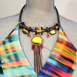Bebe, Halter Top Individually Hand Embellished Neck Strap, NWT, Size: S multi colors, side zipper, hand wash only, 95% polyester, 5% spandex