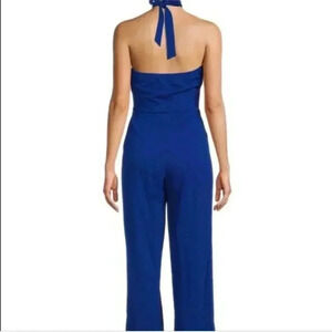 Bebe Halter Jumpsuit Double Ruffle Collar Cobalt Blue 4 / S NWT