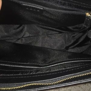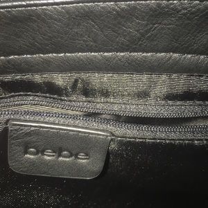 NWOT: Black Bebe handbag w/ gold linked handles or simple carry as shown in pictures. Great for a day out or addition to a plain outfit.