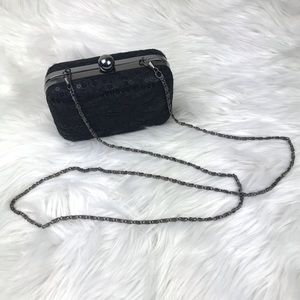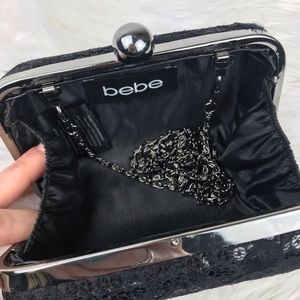 Bebe Hardshell Lace Sequin Chain Clutch Purse