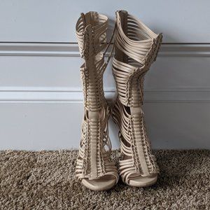 These are size 10 off tan/cream heel boots from bebe. Only worn once!
