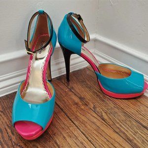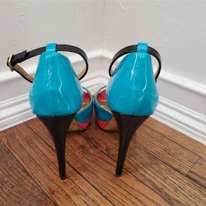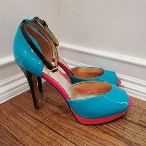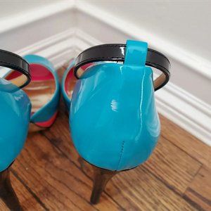 #missjaye #teal #turquoise #black #pink #coral #heels #pumps #bebe #shoes #blue #patent #leather