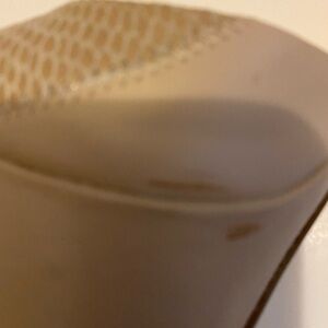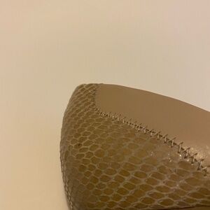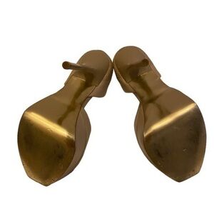 Pre-loved heels. Good condition. Some scratches and wear shown in photos. These are super cute! Heel height is approximately 5”. Open toe nude color. No trades. Smoke free and pet free environment. Thank you!