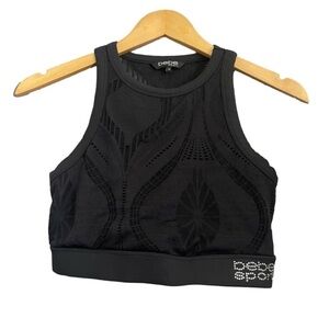 Bebe High Neck Sport Bra Top w Rhinestones Size M black