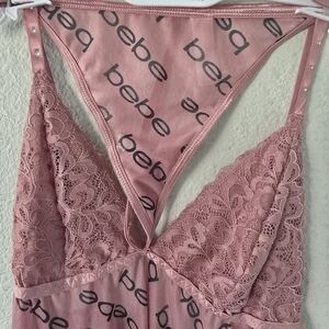 Bebe Intimates Nightwear Lingerie Set Sexy Blush Sheer Lace Sz M See Thru Y2k