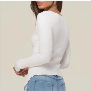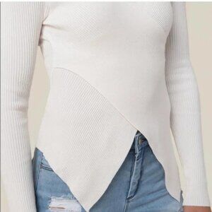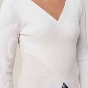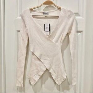 Bebe Ivory White Ribbed Wrap-Front V-Neck Ribbed Sweater