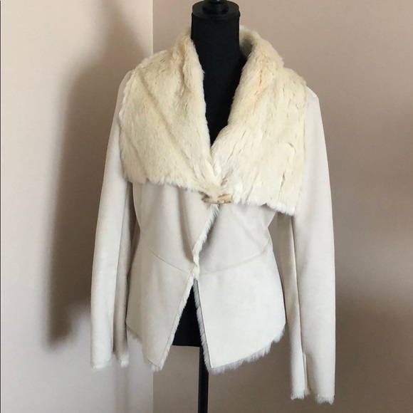 Beautiful Bebe Jacket faux fur lining and suede fabric. Gorgeous jacket that you will get alot of compliments on. No stains or rips. Like new