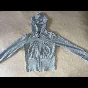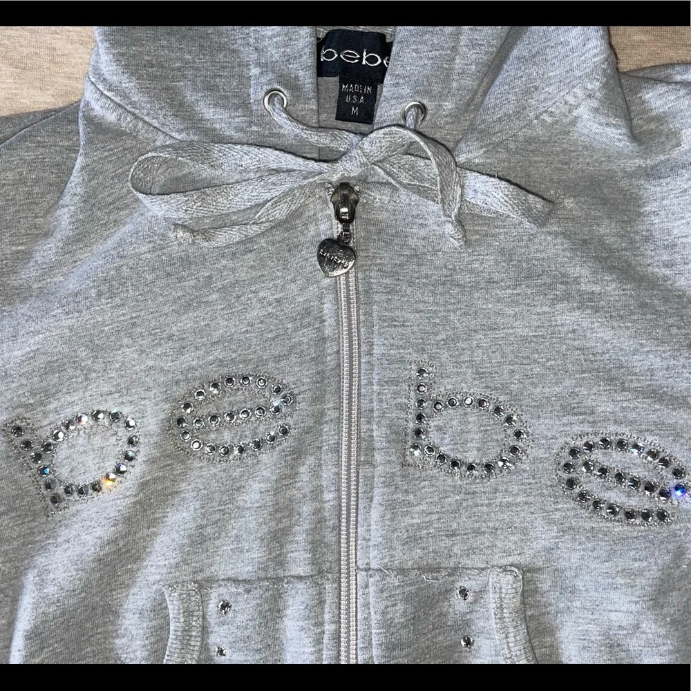 RARE FIND. Y2K gray bedazzled Bebe Jacket. Rhinestone details and the most adorable heart shaped zipper. No stains or imperfections. Bundle and save, check out my closet for more.