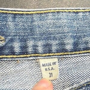 Excellent pre-owned condition. The jeans were purchased new with bleach stains to add to the distressed look.