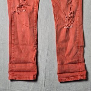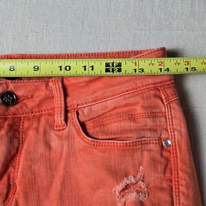 Bebe Jeans Womens 23 Orange Heartbreaker Skinny Distressed Mid Rise Pockets