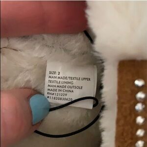 Manmade and textile upper, textile faux fur (100% polyester) lining, manmade sole