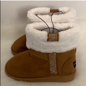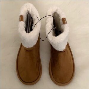 Soft microsuede boots feature warm faux fur lining for enhanced comfort.