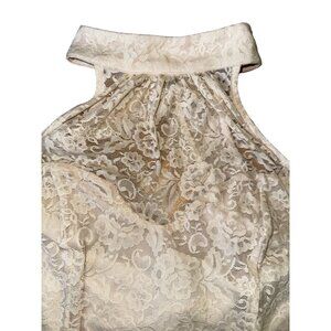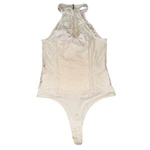 Bebe Lace Mock Neck Thong Bodysuit Large Ivory White Sexy Y2K Rock Victorian Top