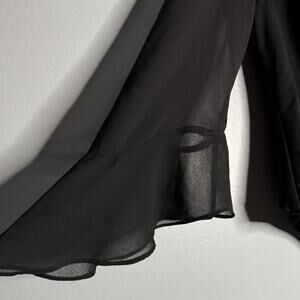 Bebe Large Black Bodysuit Sweetheart Corset Style Bust Chiffon Ruffle Sleeve