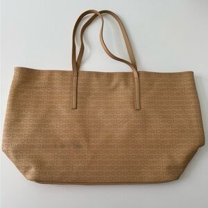 This large tote bag by Bebe is crafted from a textured fabric with a perforated Bebe logo throughout and finished with a tassel detail. Its spacious design and shoulder handles make it perfect for carrying everything you need for a day at the beach, travel, office or just everyday errands.