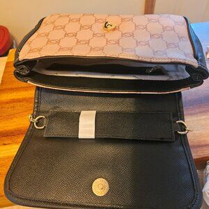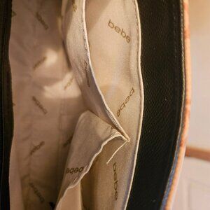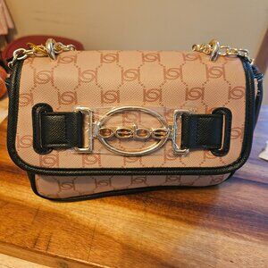 Bebe Leilani printed logo monogram shoulder bag with gold chain brand new