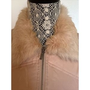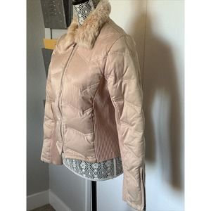Bebe Light Pink Quilted Puffer Down Jacket with Rabbit Fur Collar Size Small