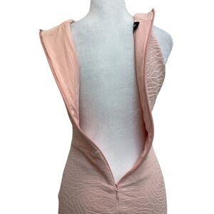 Excellent preowned condition bebe Textured Floral Tulip Hem Halter Dress in Ballet Pink, size small.