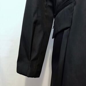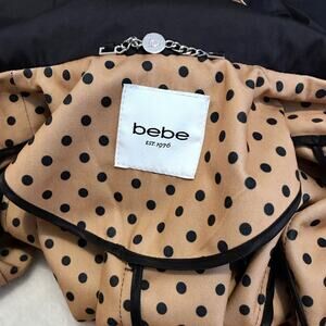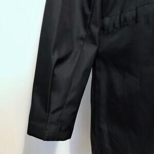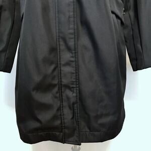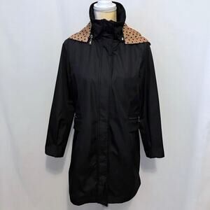 Excellent condition. Black Lightweight Softshell Jacket for Women Size S. Zipper and snap buttons for closure, 2 front pockets with zippers for closure, long sleeves - double seam at cuffs as shown in pic, removable hoodie with zipper, adjustable straps at back waist, fully lined - bronze and black polka dots throughout. Black bandeau top and necklace are not included. Pictures are part of description.