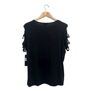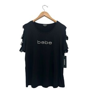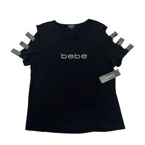 New with tags Bebe Logo Cutout Jersey Tee Blouse Black Beaded Rhinestones T-Shirt Y2K Women's Size 1X