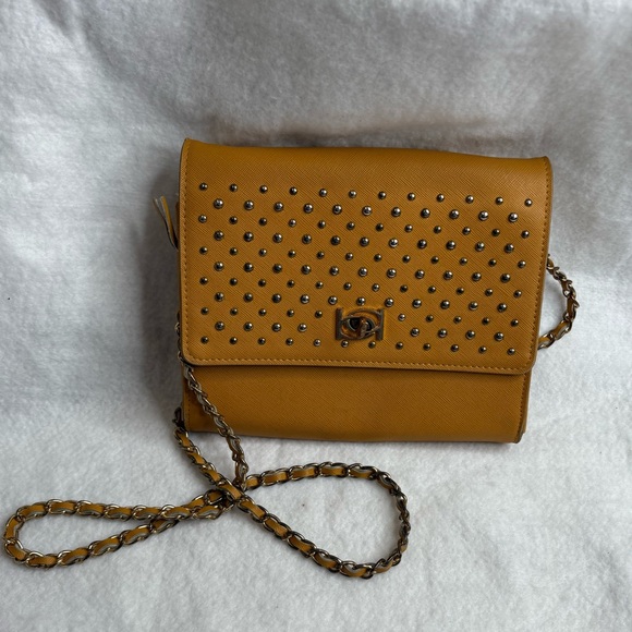 Bebe Los Angeles Studded Mustard Crossbody Bag