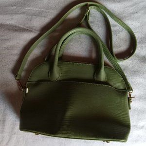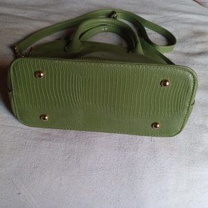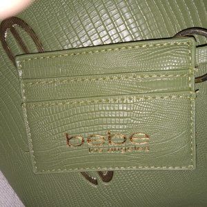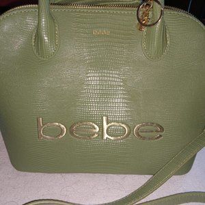 Like-new trendy lime-green Bebe Los Angeles handbag with shoulder strap and clutch handle plus logo tag with keychain. A must have for this season!