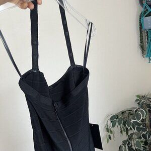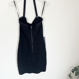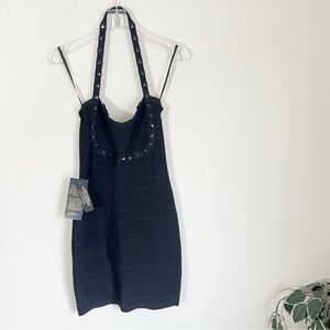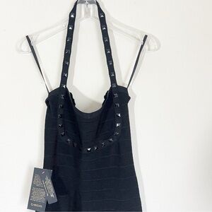 Bebe Luxe Dress Bandage Bodycon Mini Studded Halter Black Size M Club Party New