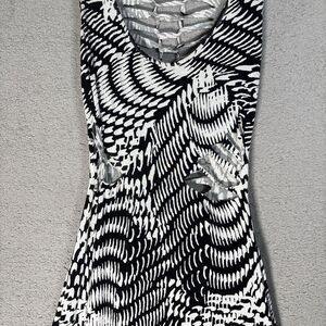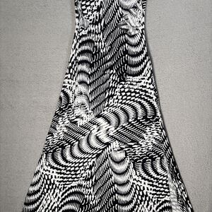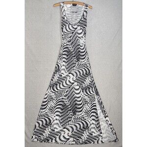 Bebe, Maxi, Long, Black, White, Abstract Print, Optical, Op Art, Psychedelic, Cut Out, Ladder Back, Slashed, Ripped, Distressed, Sleeveless, Racerback, Y2K, Early 2000s, 00s, Vintage, Retro, Grunge, Punk, Gothic, Clubwear, Party, Rave, Festival, Bodycon, Fitted, Stretch, Stretch Knit, Jersey, Slit, High Slit, Side Slit, Summer, Vacation, Travel, Statement, Unique, Bold, Edgy, Goth, Emo, Scene Kid, Sexy, Flattering, Figure