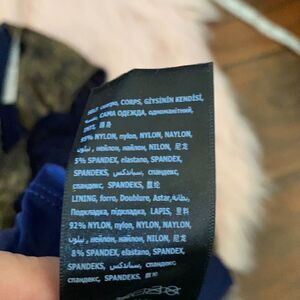 Bebe metallic lace dress, brand new with tags, gold with blue undertones. Size medium, sheer on the back, scalloped design. Fabric content: 95% nylon 5% spandex.